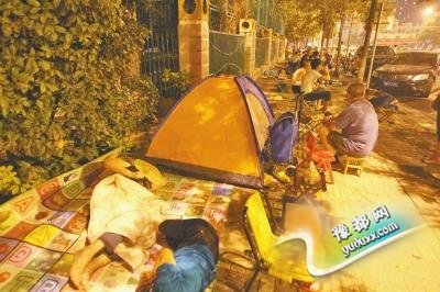 为报名,家长校门口搭帐篷彻夜排队