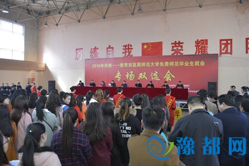 教育厅主办,河南省大中专学生就业服务中心、河南师范大学承办的“2016年河南--教育部直属师范大学免费师范毕业生双向选择就业专场供需见面会”(简称“双选会”)在河南师范大学隆重举行。省教育厅、省人社厅、省财政厅等有关负责同志和河南师范大学校长常俊标、副校长李雪山等出席“双选会”开幕式。