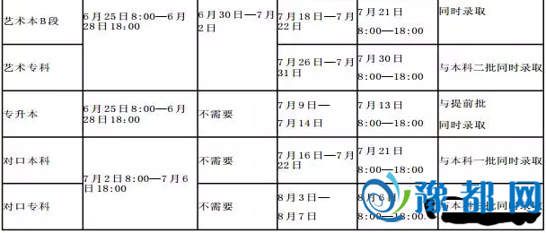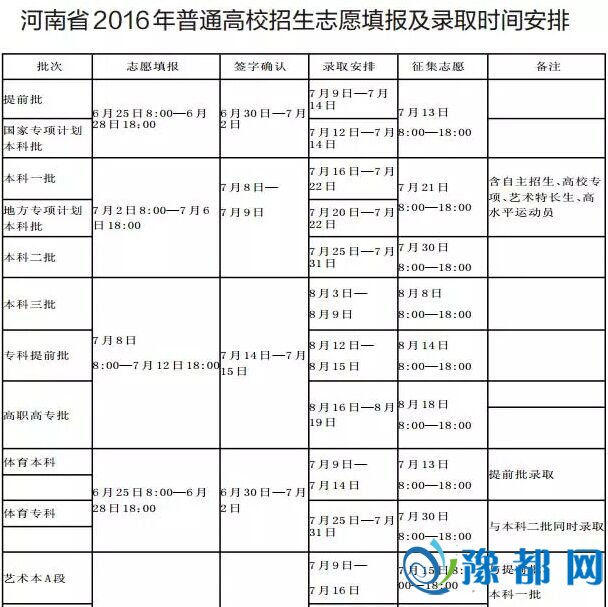 今年,各批次签字确认时间分别为:6月30日~7月2日:提前批、国家专项计划批,以及体育类、艺术类;7月8日~9日:本科一批、地方专项计划、本科二批;7月14日~15日:本科三批、专科提前批和高职高专批志愿。