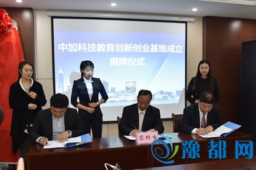 随后,双方代表签署了战略合作协议,并为中加科技教育创新创业基地揭牌。