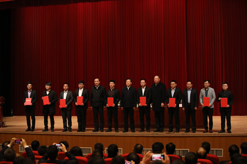 与会领导与受表彰的大学生创新创业标兵合影