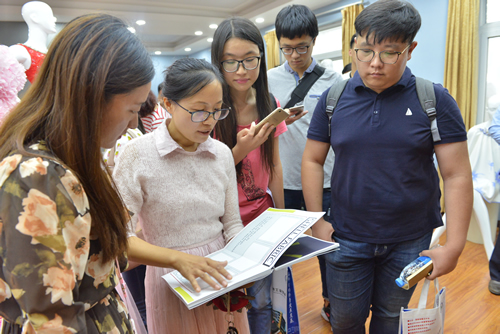 郑州科技工业学校教师向记者们介绍服装专业课程建设情况