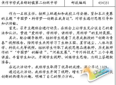 一些参赛学生比赛结束后结合网赛内容写了个人感想和个人梦想,抒发了爱祖国、爱家乡、爱科学的追梦行动。