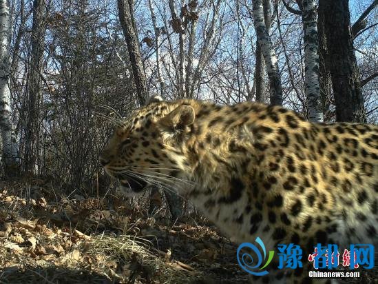 5月26日,黑龙江省森工总局对外发布消息,黑龙江老爷岭东北虎国家级自然保护区管理局在整理区内红外相机内存卡时,先后发现4次东北虎和9次东北豹影像。图为2016年4月5日,红外相机记录东北豹在保护区内觅食。中新社黑龙江省森工总局 供图