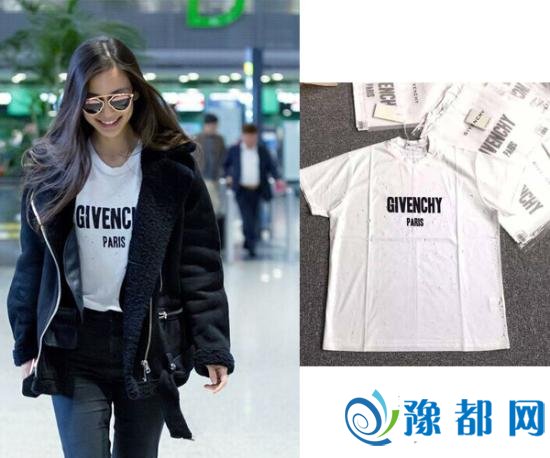 Baby人靓盘儿顺穿什么都好看,而这套机场街拍,baby内搭白色Givenchy字母T恤配上一条黑色牛仔裤,干练又时尚。