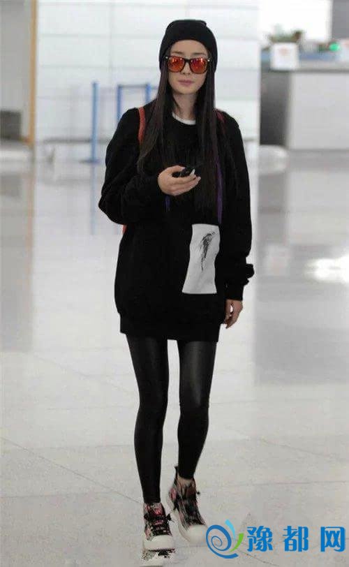 这是杨幂早年参加节目的照片,不规则领子的设计,还有下坠的腰线,都没有将她的身材表现到位,还有土气的黑丝袜,一身搭配都透着浓厚的乡土气息。
