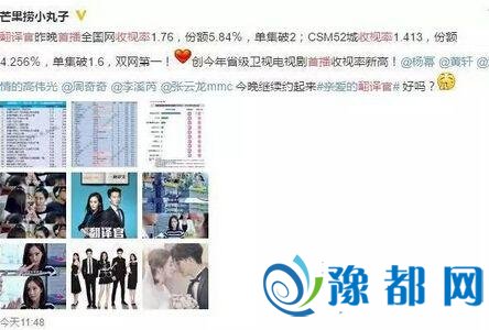 看首播成绩,《翻译官》昨晚拿下今年目前所有卫视剧首播的最高收视,终于替湖南卫视喘了口气的节奏。