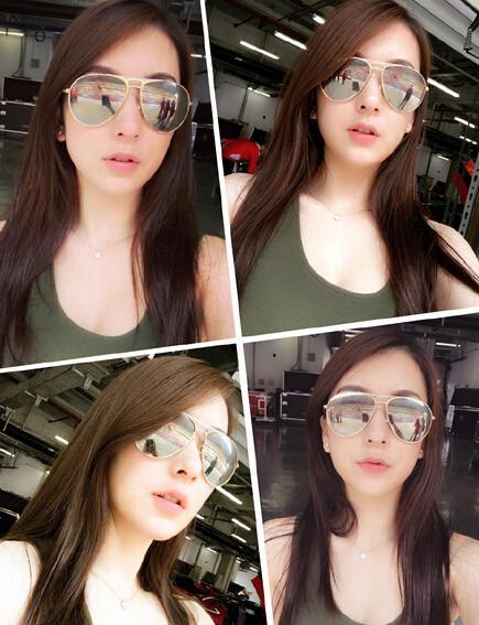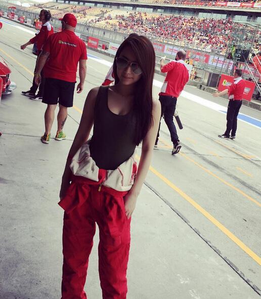 行踪已泄密,她昨天(6月11日)在Instagram大方分享在赛车场的照片,穿着红色的工作服,但褪到腰间,贴身小背心还展露事业线好性感,未知照片是否由郭富城操刀拍摄呢?