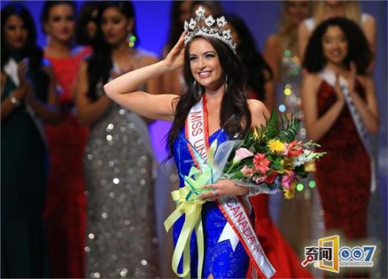 6月11日,在加拿大多伦多,西拉·贝尔切尔庆祝夺冠。当日,2016年加拿大环球小姐选美大赛决赛在多伦多落幕,来自萨斯喀彻温大学的20岁学生西拉·贝尔切尔夺得冠军。