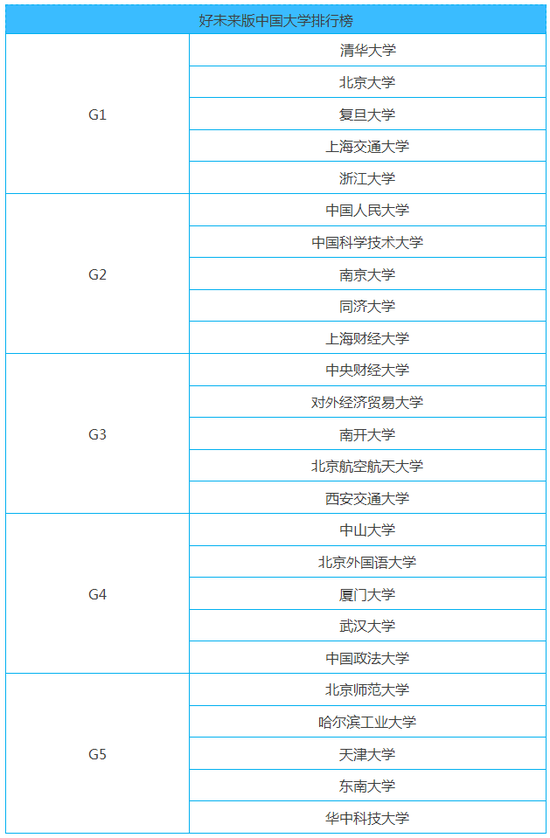 2016年6月15日,好未来旗下学而思培优、家长帮、高考帮和海边直播四大品牌联合发布《2016年好未来版中国大学排行榜》。此次全新推出的榜单,在2015年既有的全国、北京和广东榜单基础上,新增了天津、四川、陕西三个省市的榜单内容,旨在更精确地为全国考生高考志愿填报提供直接参考依据。