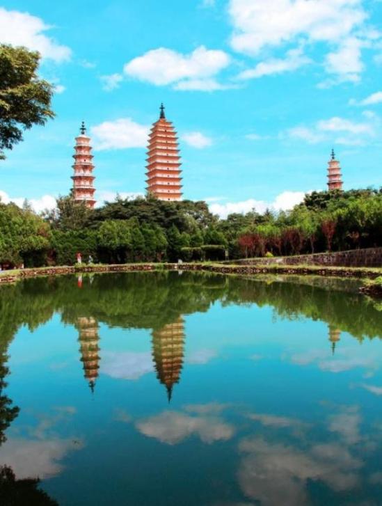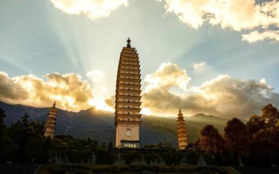 崇圣寺以寺中三塔闻名于世,又称“大理三塔”,是中国著名的佛塔之一,三塔由一大二小三座佛塔组成,呈鼎立之态,远远望去,雄浑壮丽,是苍洱胜景之一。