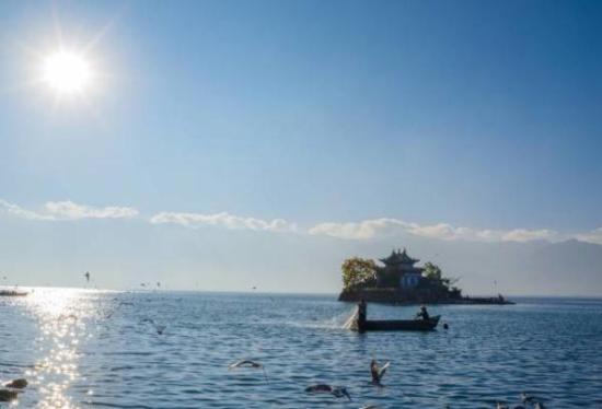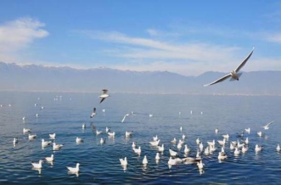 作为大理“风花雪月”四景之一,蓝天绿水,云淡风轻,是个适合发呆的惬意之地。洱海外形如同耳朵,空中俯瞰,洱海宛如一轮新月,静静地依卧在苍山和大理坝子之间。