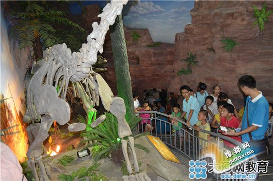 随后孩子们依次进入博物馆。中原工学院的大学生志愿者和河南省政府办公厅的志愿者们一道带领孩子们观看了4D电影,体验了一把身临其境的美妙感觉。之后,志愿者们带领孩子们游览了地球厅,了解奥妙的宇宙和地球;参观了恐龙厅,近距离感受了中生代陆地霸王的风采;穿过了地球生命从无到有,从简单到复杂,从低级到高级发展的生命演化厅;在矿产资源厅和矿物厅,他们见识了各种矿产资源,了解了河南的主要矿产资源,饱览了数百种矿物晶体、宝石标本;在地球环境厅,孩子们一起领略了中原大地丰富的地质遗迹资源,了解地质环境对人类生存与健康、社会发展、文明进步的影响。