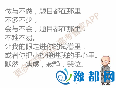 《走过路过,千万莫错过各路英雄好汉如何调侃高考秀》由河南新闻网-豫都网提供,转载请注明出处:http://edu.yuduxx.com/sxks/gk/442534.html,谢谢合作!