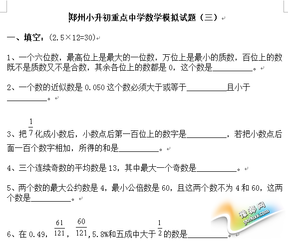 《2015郑州小升初分班考试数学模拟题(三)》由河南新闻网-豫都网提供,转载请注明出处:http://edu.yuduxx.com/sxks/xsc/253257.html,谢谢合作!