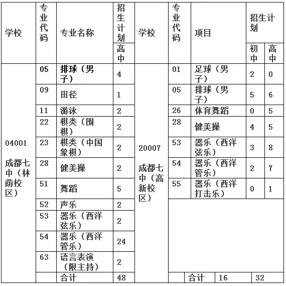 成都部分初中学校艺体招生公告链接