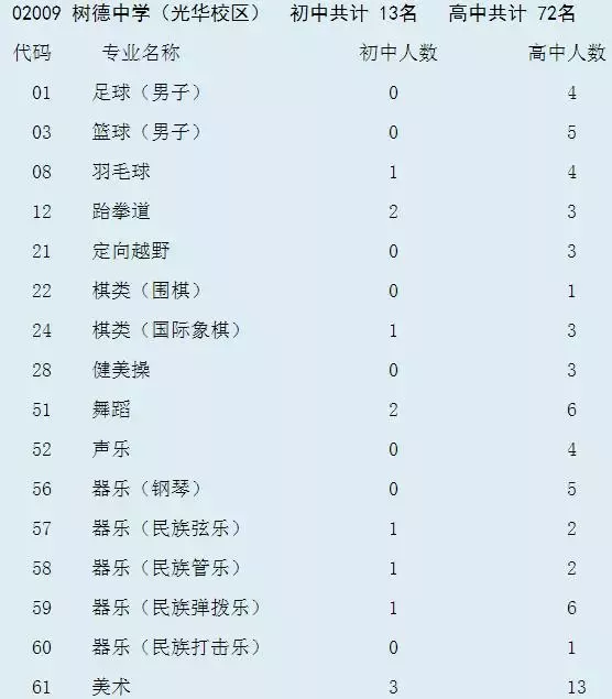 一、初中艺体特长生招生计划表