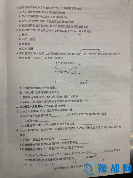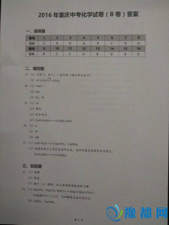 《2016中考 重庆化学及参考答案(B卷)》由河南新闻网-豫都网提供,转载请注明出处:http://edu.yuduxx.com/sxks/zk/437806.html,谢谢合作!