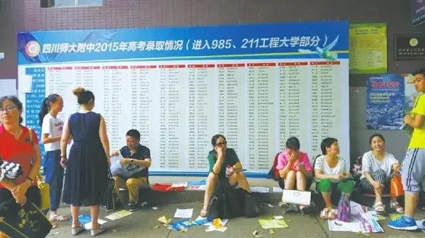 “一场考试几乎把全省优秀学生都聚集在一起了。”这是家长和考生们的共同感受。“尖子生就是在无数考试中脱颖而出的圣斗士。”下午4点刚过,在狮子山校门口,第一个走出校门的男生受到了家长们的夹道欢迎,人群中爆发出热烈的欢呼声,场面就像迎接一个个从高考战场上下来的勇士。在川师附中大门外一个巨大的展板分外引人注目,上面罗列着去年该校考上985、211重点院校学生的名单。