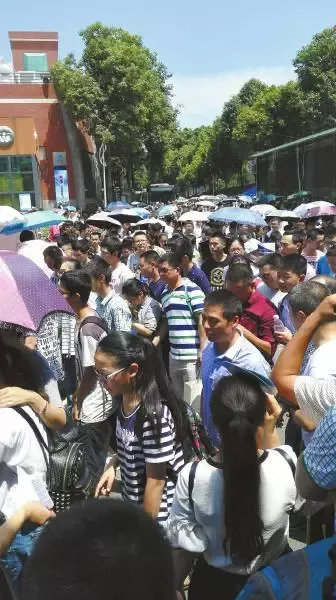 19日一大早,双流中学校门外便人山人海,该校2016年自主招生考试拉开帷幕。尽管骄阳似火,家长和学生依然火爆,校门口的街道甚至被人流隔断。