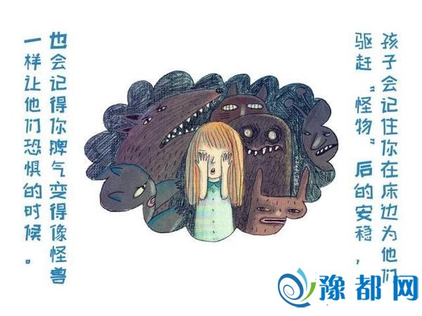 “孩子会记住你在床边为他们驱赶“怪物”后的安稳,或在噩梦之后拥抱他们的安心。但同样,也会记得你脾气变得像怪兽一样让他们担心恐惧的时候。“