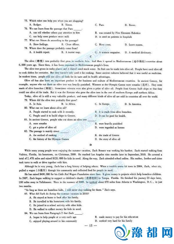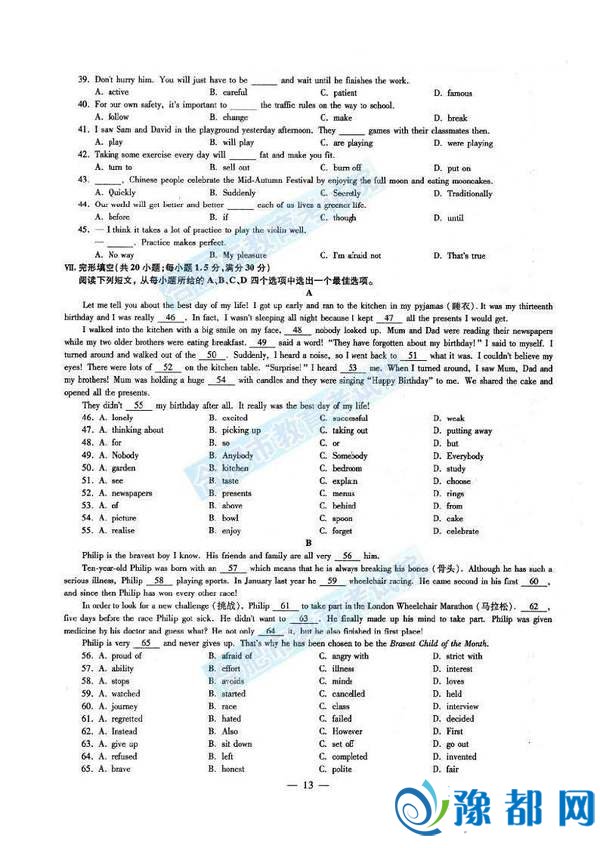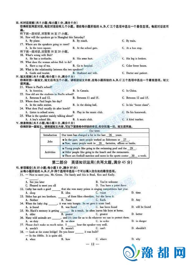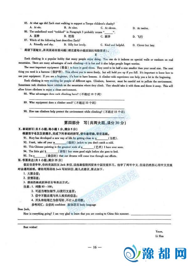 《2016中考 安徽英语试题及参考答案(含听力)》由河南新闻网-豫都网提供,转载请注明出处:http://edu.yuduxx.com/sxks/zk/440415.html,谢谢合作!