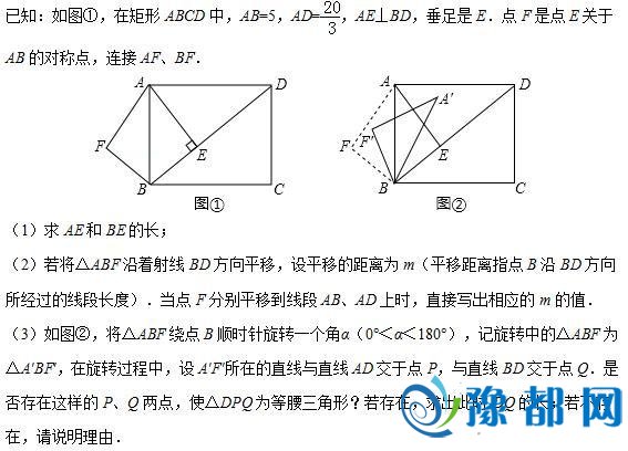 本题是几何变换压轴题,涉及旋转与平移变换、矩形、勾股定理、等腰三角形等知识点.第(3)问难度很大,解题关键是画出各种旋转图形,依题意进行分类讨论;在计算过程中,注意识别旋转过程中的不变量,注意利用等腰三角形的性质简化计算.