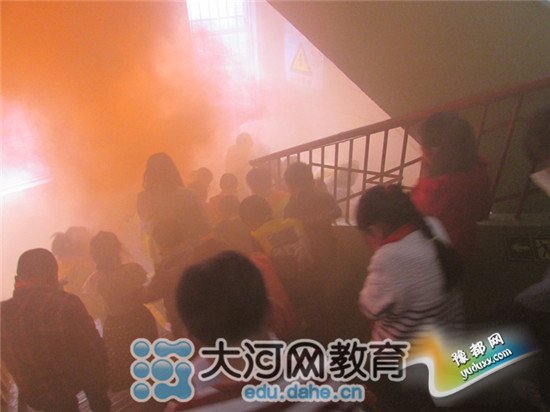 三个校区的演练负责人在演练后都进行了总结,指出了存在的问题:学生情绪紧张、慌乱,不能互相照顾,在一定程度上影响了演练的速度;个别同学没有带毛巾,在浓烟滚滚的情况下无法捂口鼻,容易造成窒息等等。