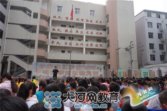 大河网教育频道讯:今年5月12日是我国第七个“防灾减灾日”,主题是“科学减灾、依法应对”。为提升师生防震减灾的应急意识和自救互救能力,2015年5月6日上午,中原区伏牛路小学利用课间操时间,在三个校区同时举行了防灾减灾应急疏散演练活动,同时邀请郑州安居防火培训中心的特级教官霍海杨现场进行指导。